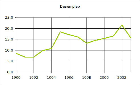 Evolución de la tasa de desempleo en Argentina en el período 1990-2003